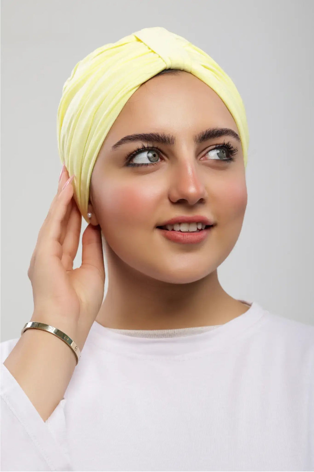 تيربون فريد ومميز مصمم خصيصًا لكِ لإضافة المزيد من الأناقة إلى مظهرك. مصنوع بخامة 95% قطن و5% ليكرا. سهل الارتداء ومريح للغاية وثابت طوال اليوم.