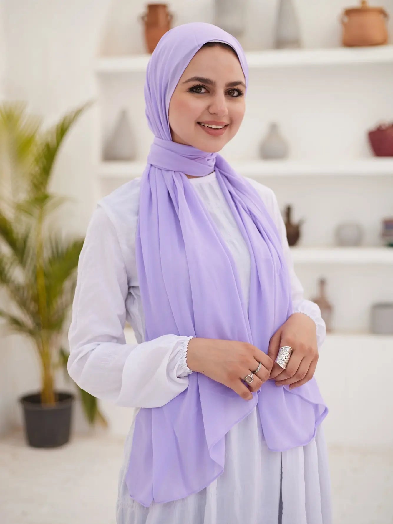 اوشحة الشيفون السادة الاساسية من جميلة مصنوعة بأجود خامات الشيفون. ستقعين في حب الحجاب مرة اخرى بخامة خفيفة وطرية تسمح بالتنفس وبملمس ناعم ستكمل مظهركٍ بشكلٍ زاهر وخلّاب سواءً احببتي الظهور بشكل دارج او رسمي وفاخر. متاحة بتشكيلة الوان جذابة ستعتمدينها من القطع الأساسية في خزانتك.