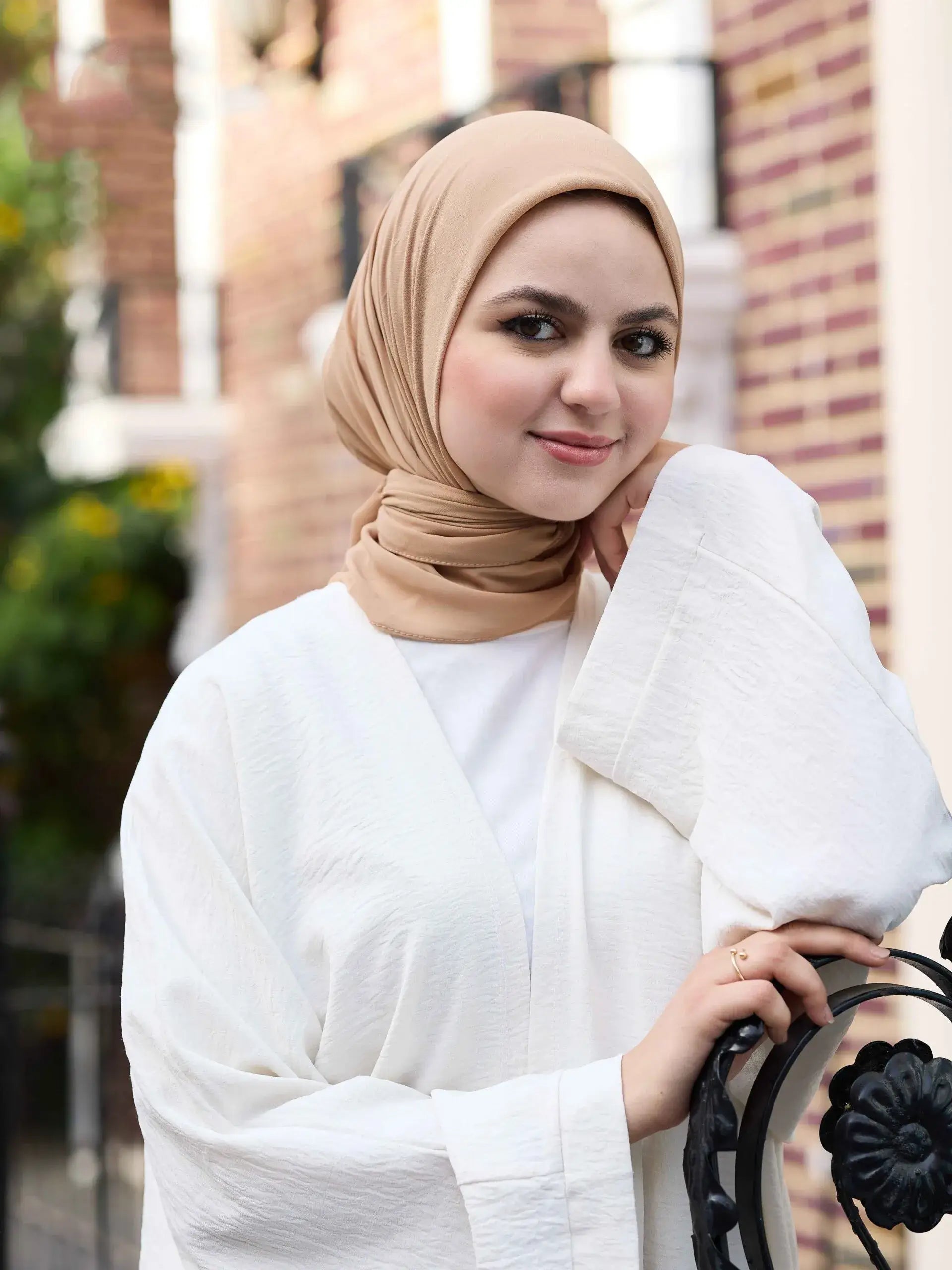 اوشحة الشيفون السادة الاساسية من جميلة مصنوعة بأجود خامات الشيفون. ستقعين في حب الحجاب مرة اخرى بخامة خفيفة وطرية تسمح بالتنفس وبملمس ناعم ستكمل مظهركٍ بشكلٍ زاهر وخلّاب سواءً احببتي الظهور بشكل دارج او رسمي وفاخر. متاحة بتشكيلة الوان جذابة ستعتمدينها من القطع الأساسية في خزانتك.