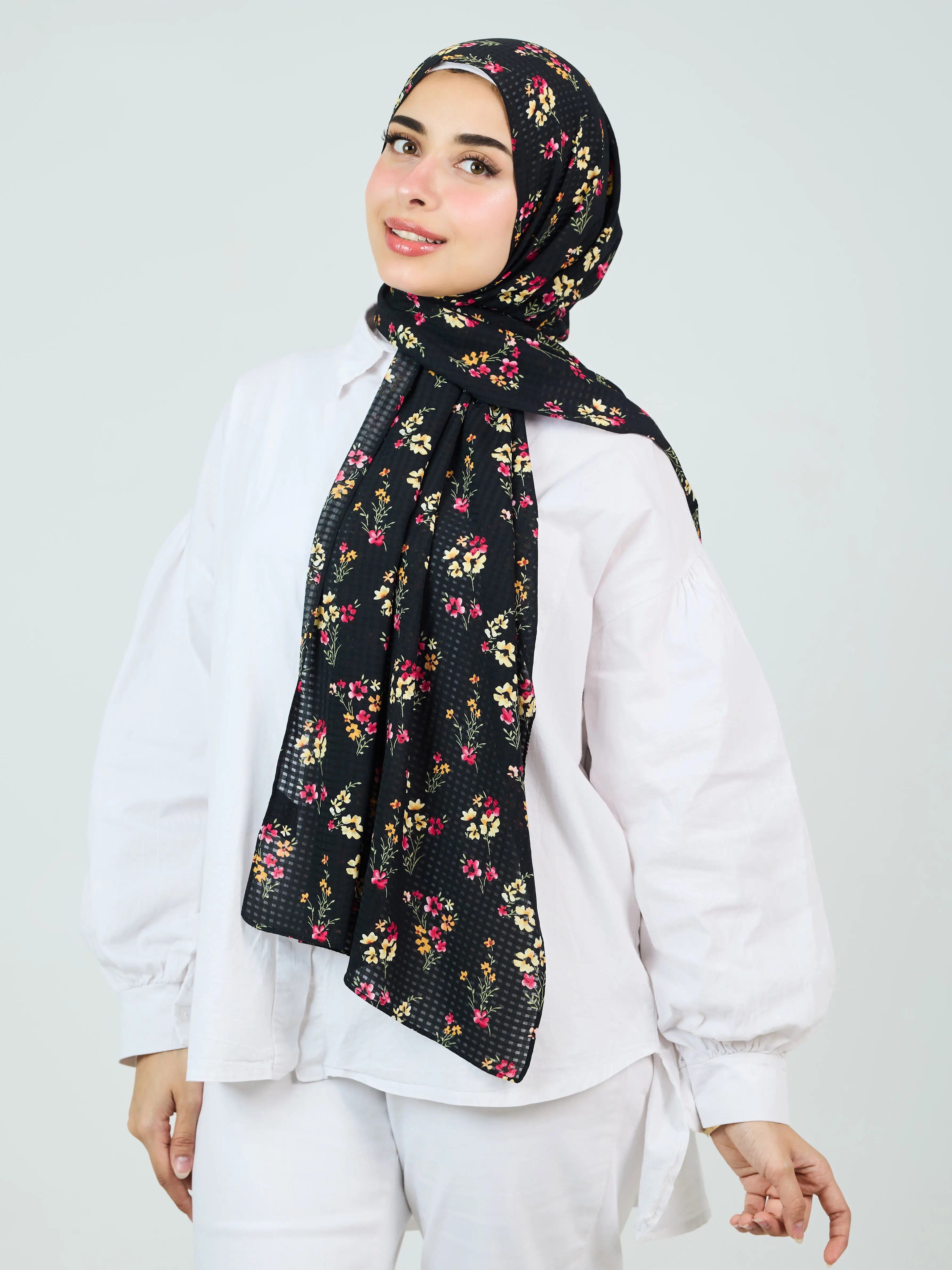 Add a splash of flawlessness to your hijab collection with our BSK printed Scarves. It features a multi tones floral prints for a rich and unique design giving you a sleek, polished look every time. Made of the best Jamila's textured Chiffon material and it's available in a verity of stylish colors.
