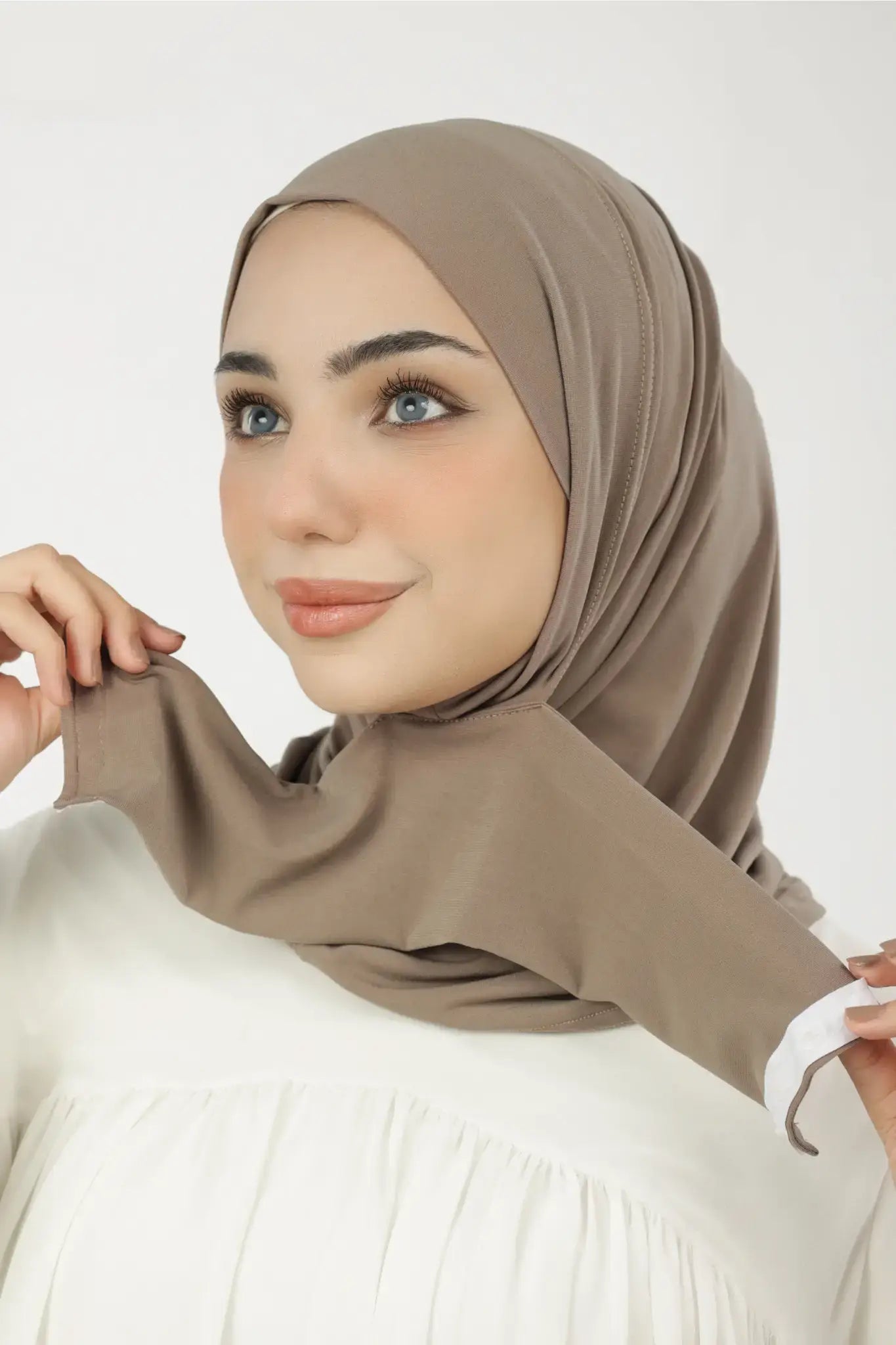 An elegant alternative to the usual scarf. With a compressive button from the back, which will prevent you from using pins. It is available in many different colors and made with 100% Gersey material.